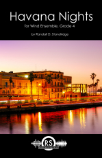 Havana Nights is a concert work for Wind Ensemble, but it was also conceived as a short ballet.  The action takes place in the mambo clubs of Havana as our heroine (Havanna) dances her way through the night life.  She encounters another young dancer and the two begin a flirtatious, seductive conversation through the art of movement.  As the ballet comes to a close, Havanna casts one final, gleeful look at her would-be suitor before escaping into the night.